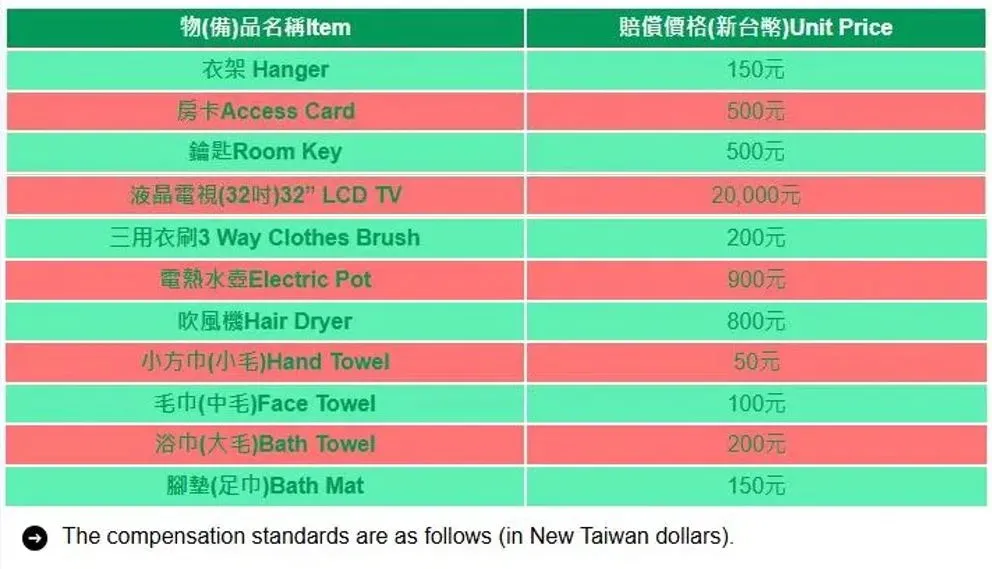 每間客房若欲增加住客,每人每日將另收新台幣660元(增加一套寢具、衛浴備品及一份早餐);若需加床,每床每日將另收新台幣770元。