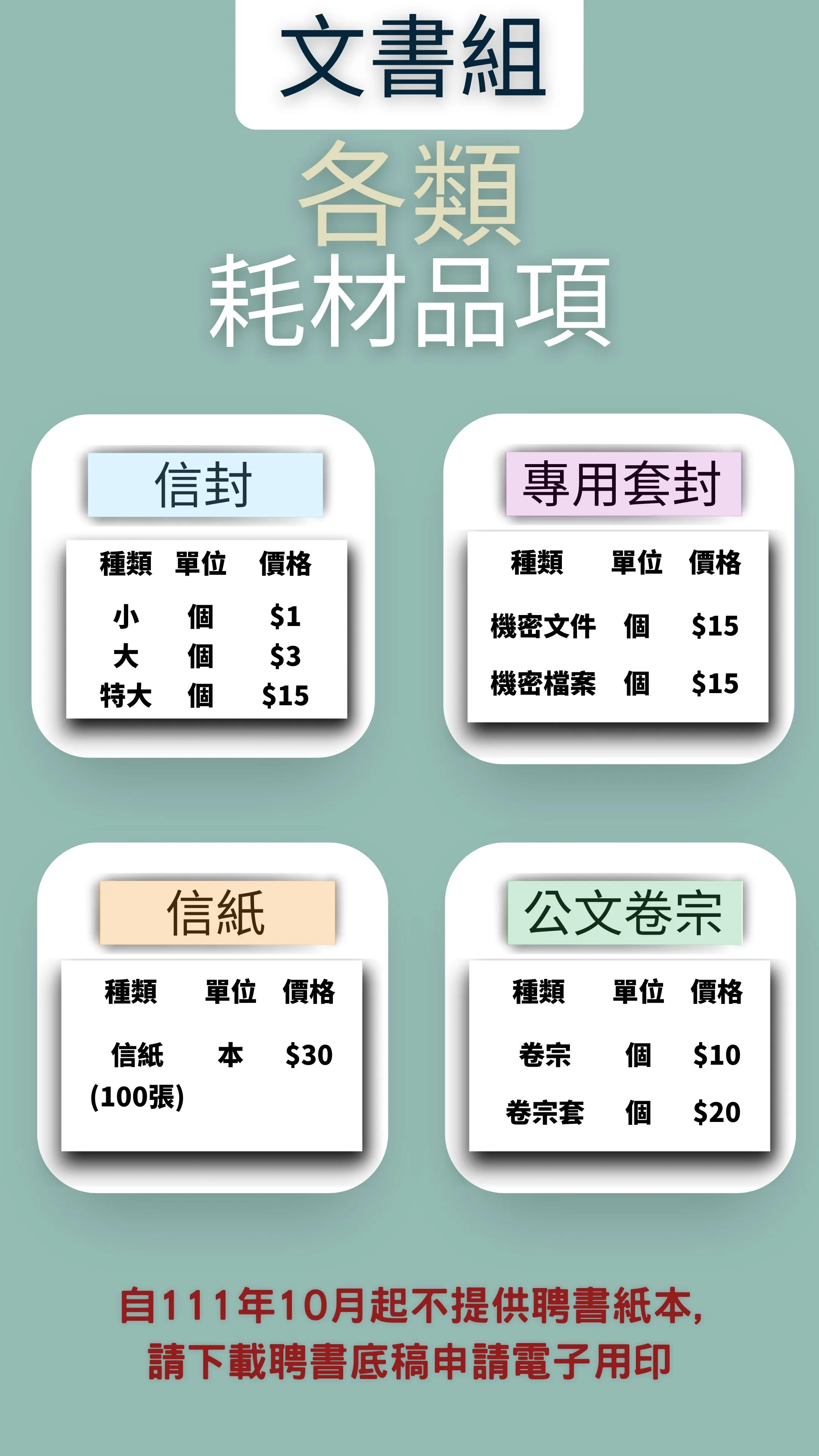 物品申購項目參考:文書組物品申購單(.pdf、.odt、.doc)